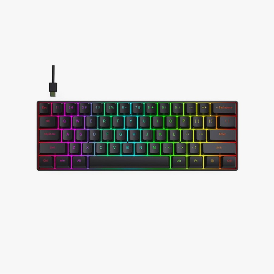 This wired keyboard features a compact 61-key layout, saving desktop space and making it ideal for office work, gaming, and mobile use. The keyboard boasts a waterproof design, effectively protecting against accidental spills and enhancing safety and durability. It features a built-in RGB backlight system with vibrant lighting effects, adding a touch of technology to your desktop. Anti-slip feet on the bottom ensure stability during intense use or prolonged typing, providing a more stable and secure typing experience.