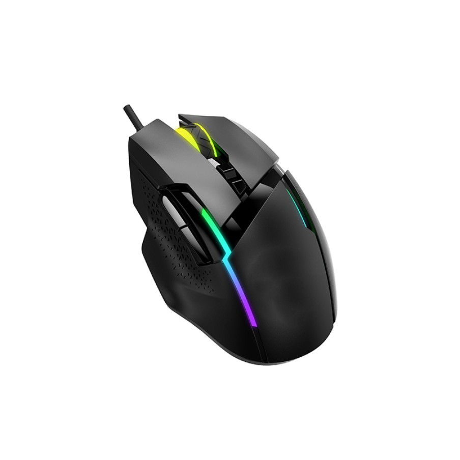 This wired mouse features an ergonomic design that perfectly fits the curve of your hand, providing a comfortable grip and effectively reducing wrist and finger fatigue even during prolonged use. The specially designed thumb rest provides extra support, stabilizing your hand position for more precise and effortless operation. It supports plug-and-play functionality, requiring no driver installation; simply connect it to your computer and start using it. Equipped with RGB backlighting, the multi-color lighting effects can be freely switched, adding a touch of technology and personalized visual experience to your office, study, and gaming environments. The high-precision optical sensor ensures accurate cursor positioning and rapid response for smooth and fluid operation.