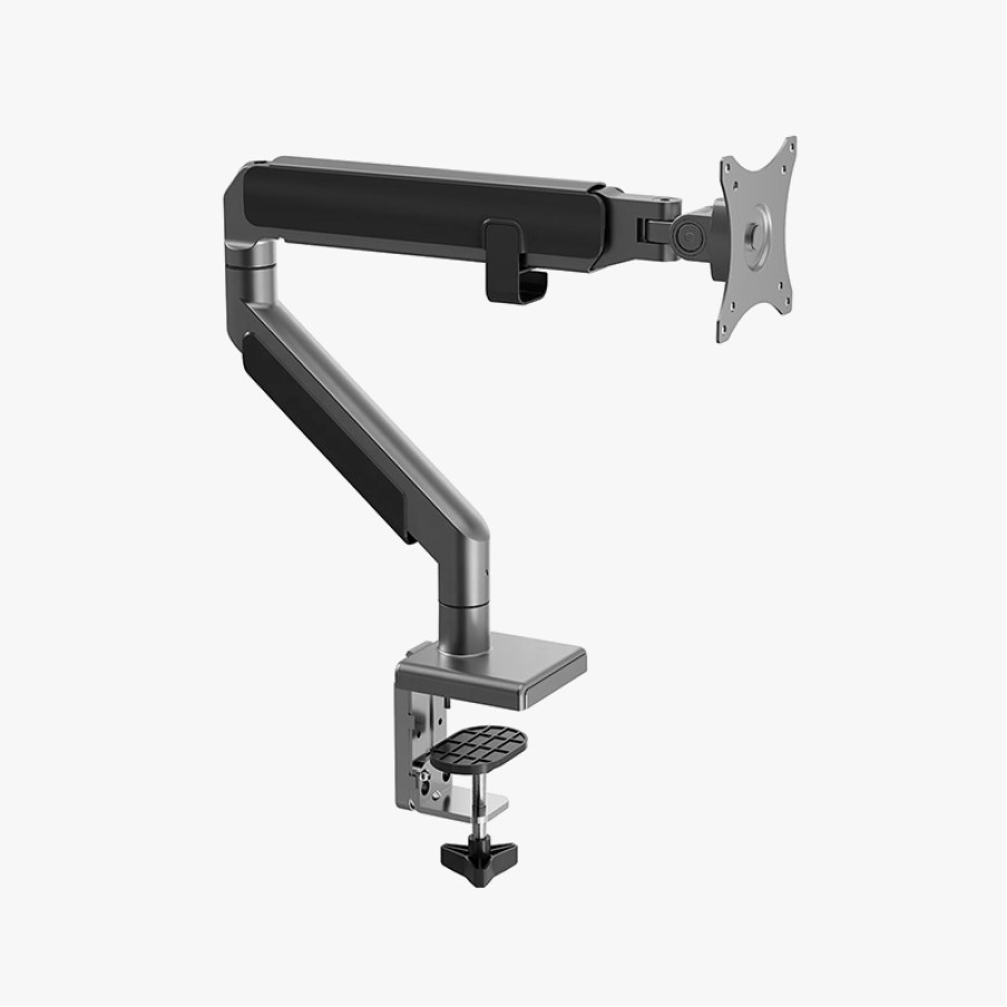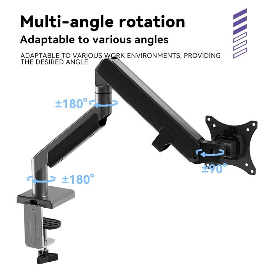This monitor stand features a gas spring support design, allowing for easy and smooth height adjustment, enabling you to quickly find the most comfortable viewing angle. The stand supports multi-angle rotation, accommodating various needs for office work, design, or entertainment, whether it's horizontal rotation or tilt angle adjustment. With a maximum load capacity of 14 kg, it is compatible with most medium to large monitors, providing stability and security to prevent tilting or slipping in various operating environments. The overall design follows ergonomic principles, optimizing viewing angles and reducing neck and shoulder strain, ensuring comfort even during prolonged use.