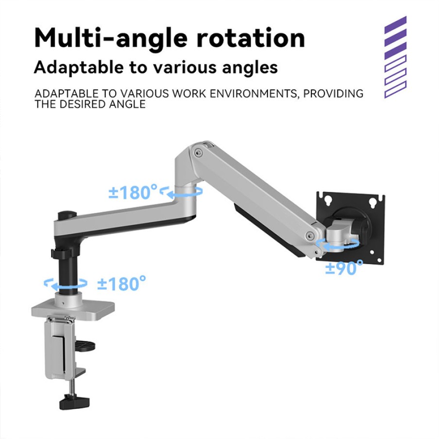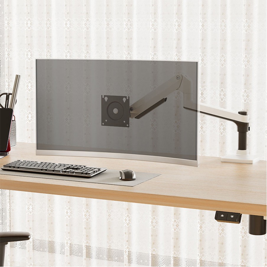 This monitor stand features a mechanical spring support system, allowing for easy and smooth height adjustment of the monitor with minimal effort. The stand supports multi-angle rotation and tilting, allowing users to freely adjust the monitor's orientation according to their work, design, or entertainment needs, easily switching between landscape, portrait, or any angle combination for the best viewing experience. The stand has a maximum load capacity of 12 kg, compatible with most small and medium-sized monitors, and its sturdy and durable structure ensures the monitor remains safe and stable during use. Combined with ergonomic design, it optimizes viewing angles and posture, reducing neck and shoulder strain, ensuring comfort even during long hours of work or design.