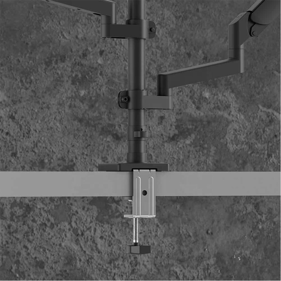 Black gas spring dual monitor mount arm