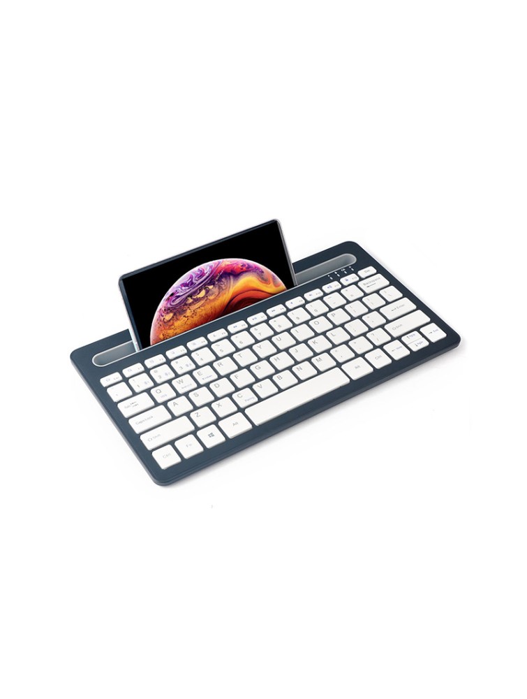 This wireless keyboard features an ultra-thin design, making it lightweight and portable, saving desktop space and convenient for carrying around. The 78-key full-function layout balances office efficiency and comfortable typing. The ergonomic design conforms to the natural curve of your hand, effectively reducing wrist fatigue caused by prolonged typing. A built-in groove stand for phones and tablets securely holds your devices, allowing for easy multitasking and screen synchronization. Wireless connectivity keeps your desktop clutter-free, making it ideal for office, study, and home use, and an excellent choice for efficient work and mobile input.