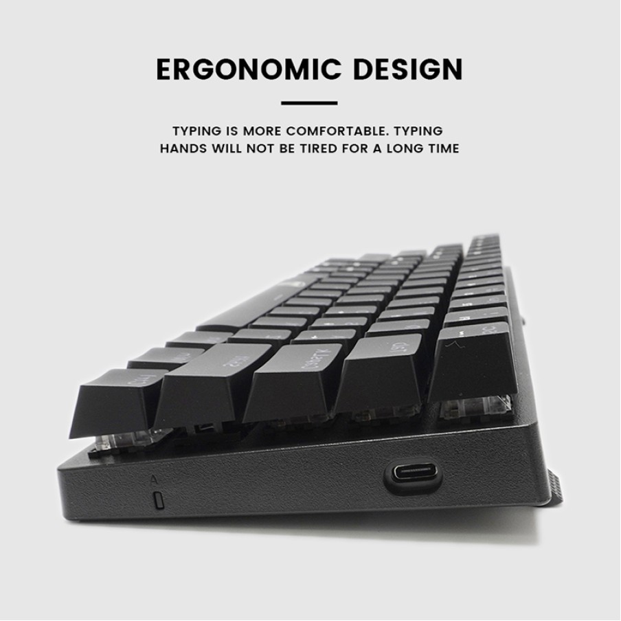 This wired keyboard features an ergonomic design that conforms to the natural curve of the hand, effectively reducing wrist and finger fatigue from prolonged typing and improving typing comfort. The compact 61-key layout saves desktop space and is suitable for office work, studying, and multimedia operations. The keyboard supports LED backlighting with multiple adjustable lighting modes, allowing for clear operation even at night or in low-light environments, while also adding a touch of modern style to your desk. The adjustable feet at the bottom allow you to adjust the keyboard's tilt angle according to your personal preferences, optimizing typing feel and experience. High-quality wired connectivity ensures stable data transmission, making it suitable for long-term use.