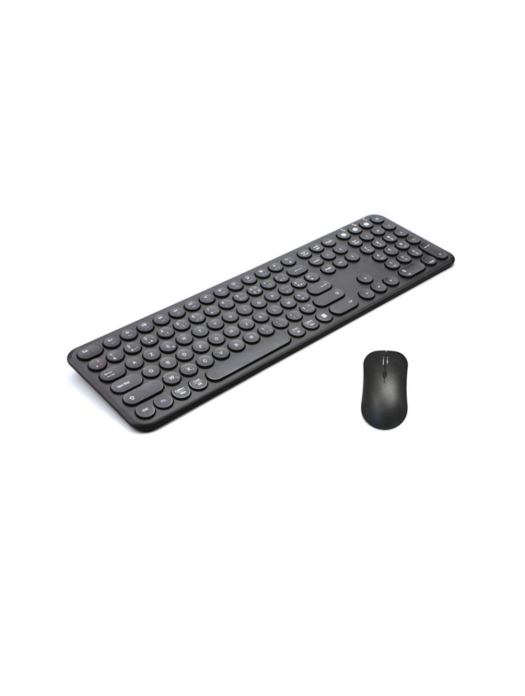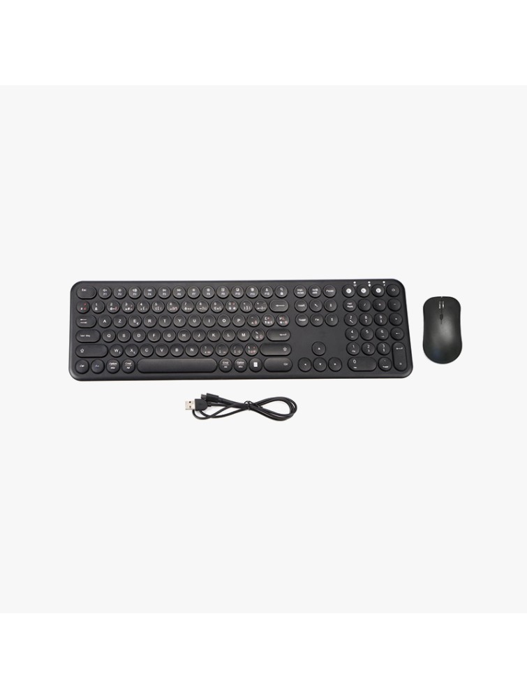 This keyboard and mouse set features a slim and lightweight design, with a stylish and minimalist appearance, making it easy to carry and store while saving desktop space. The keyboard features a unique round key design, providing comfortable and responsive typing, while also offering a distinctive visual appeal. The set supports wireless connectivity, freeing you from cables for more flexible and convenient operation and a clutter-free desktop. The mouse is lightweight and responsive, ensuring smooth operation. The overall design is harmonious and aesthetically pleasing, making it an ideal choice for office, study, and home use.